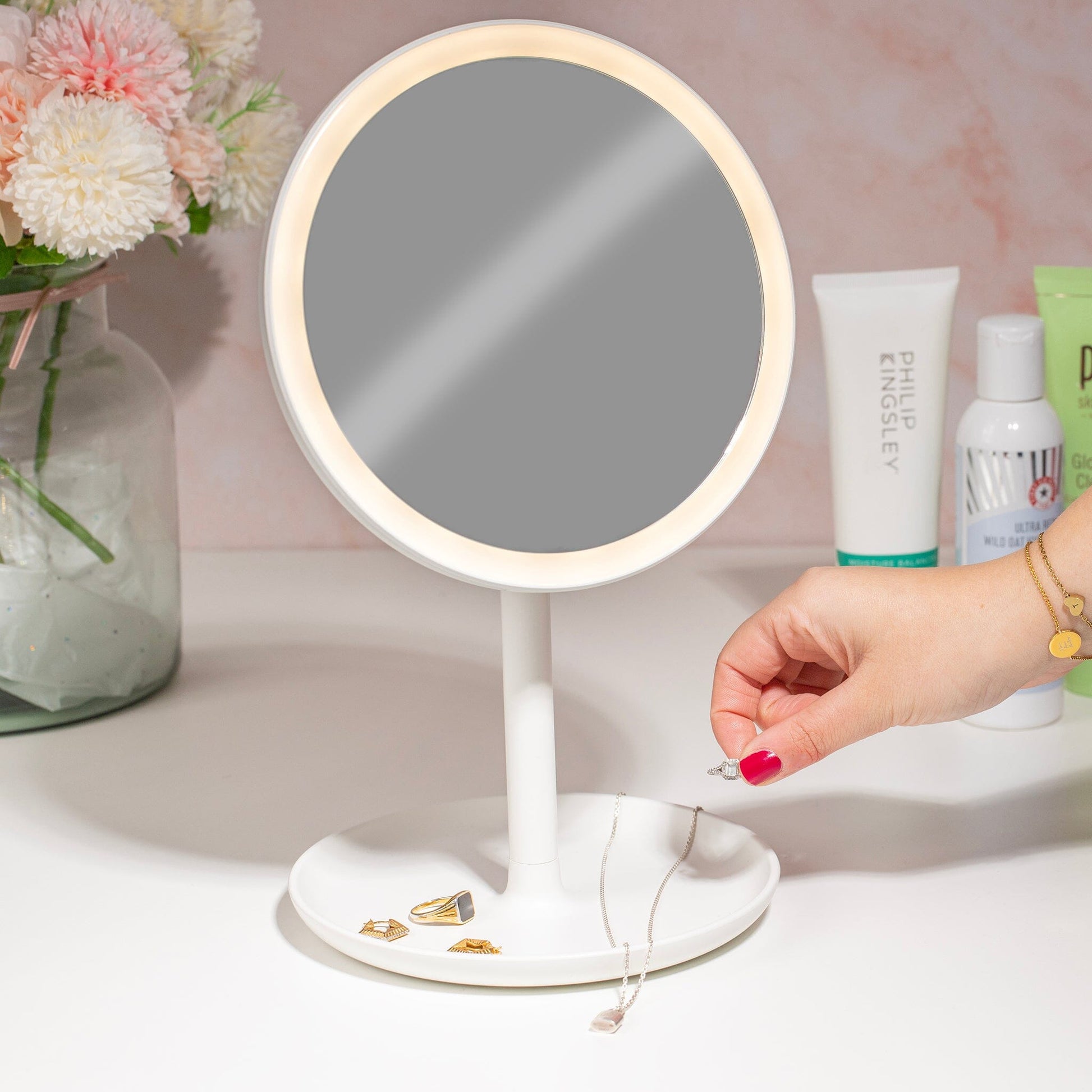 Your beauty routine just got a beat drop with the STYLPRO Melody Mirror, the ultimate makeup tool for the modern makeup enthusiast. With its sleek and elegant design, this fancy desk mirror combines style and functionality in one. Equipped with different light settings, you can now flawlessly apply your makeup every time. But that's not all, you can also enjoy your favorite playlist streamed through the mirror's speakers, transforming your beauty routine into a relaxing music session. Plus, the mirror features a trinket dish on its base, giving you a convenient storage solution for your jewellery pieces.